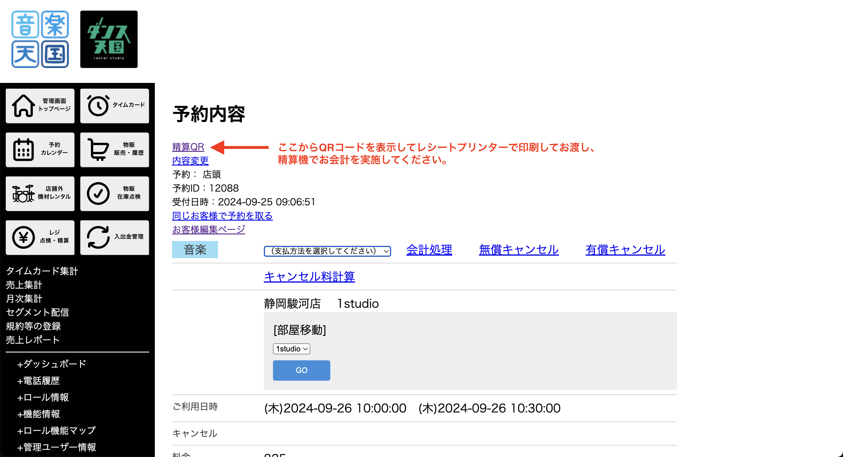ブッキング天国への登録がある・ないに関わらず、スタジオご利用後はこれまでと同じ流れでカウンターにてお客様のご対応を