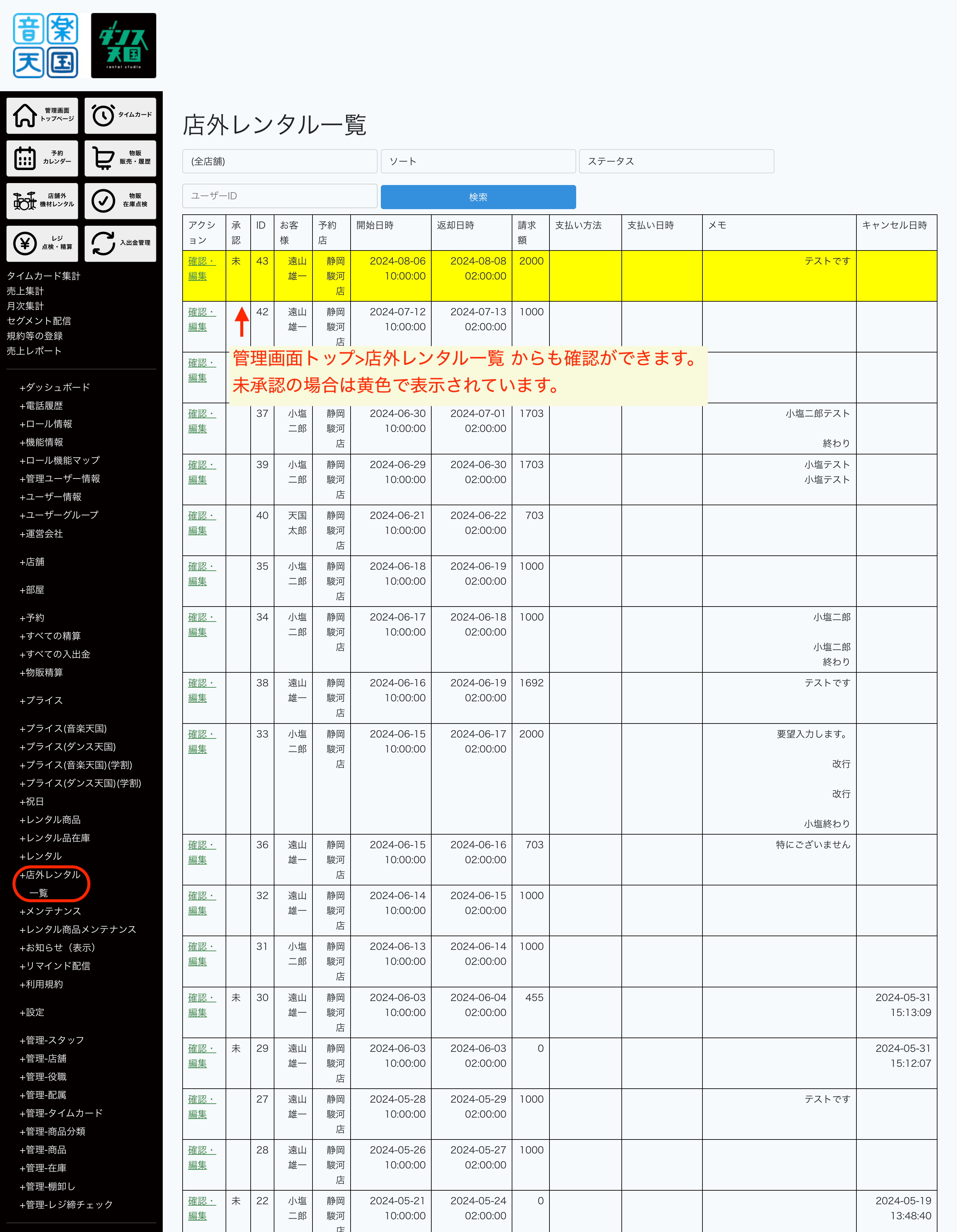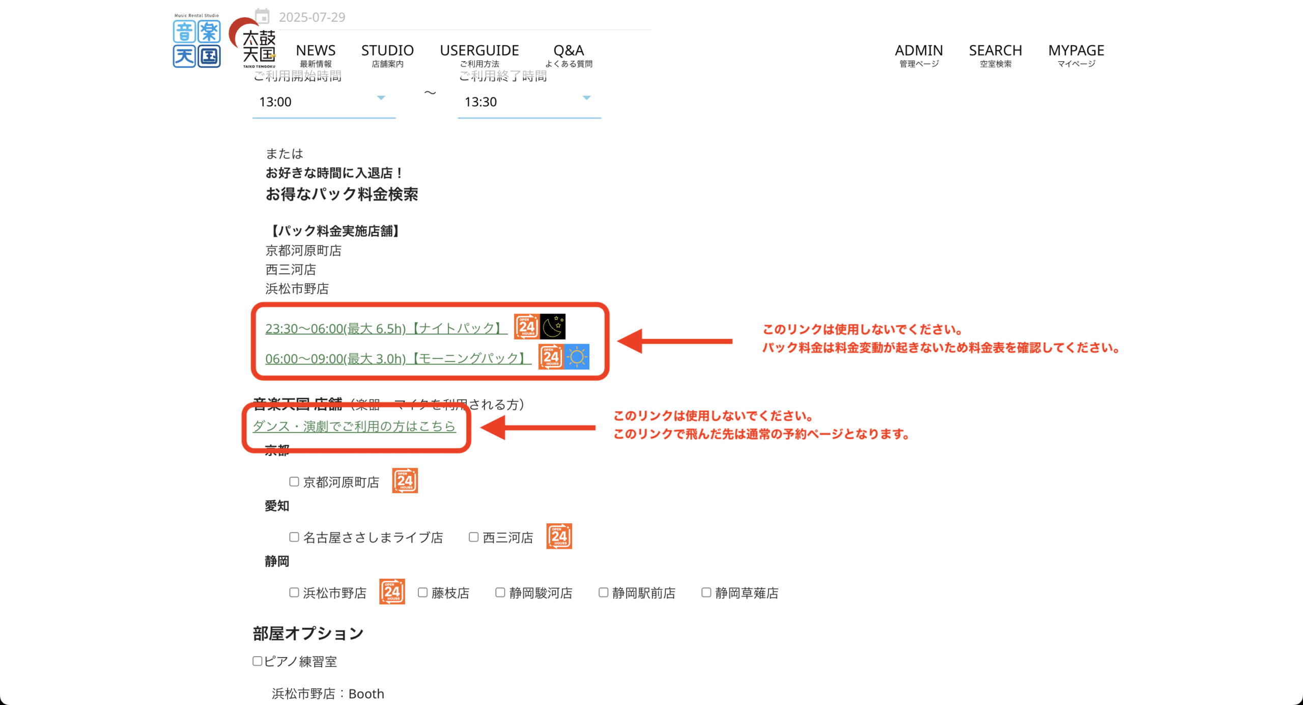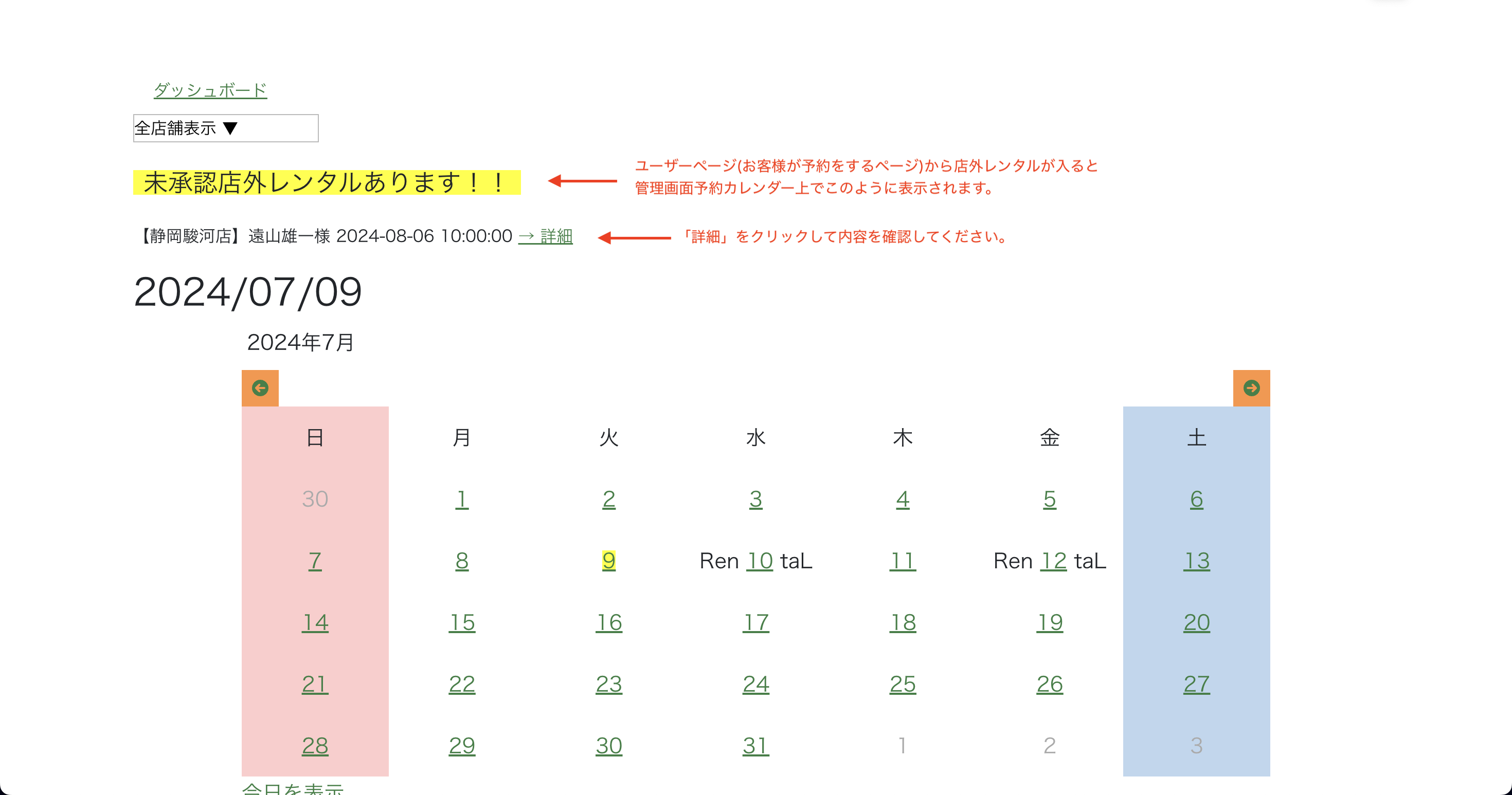 過去の日付には戻れませんが、ブースやオプション機材の予約が実際に入っていてもそれらを無視して確認をすることが可能です。