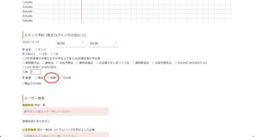 管理画面>予約カレンダーのスタッフ予約からのみ予約が可能です。