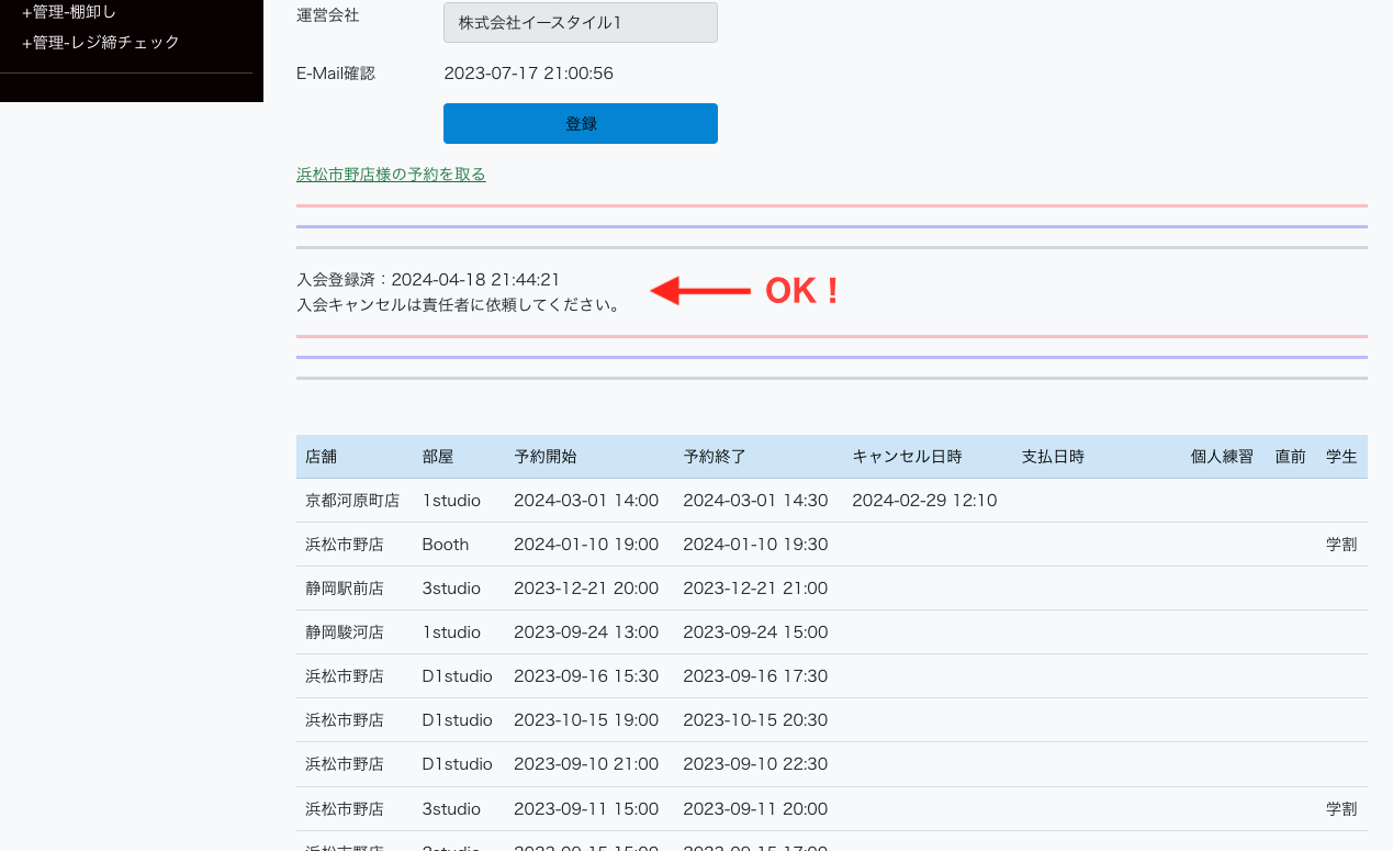 ※入会登録のボタンを押下後はスタッフ権限では解除できません。誤って押してしまった等で解除をする場合には上長に連絡をしてください。