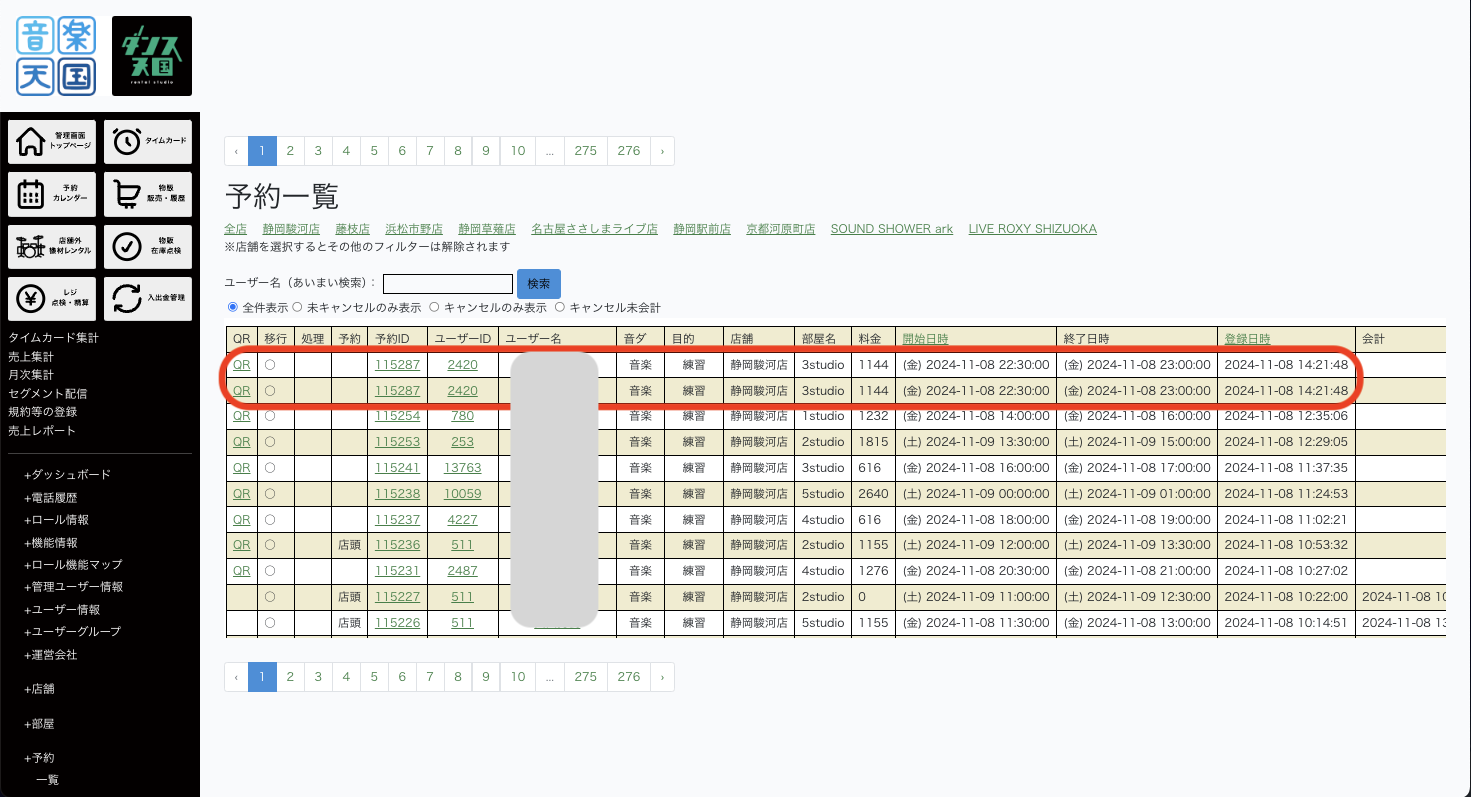 【2024/11/8】予約一覧で予約IDが重複する不具合について